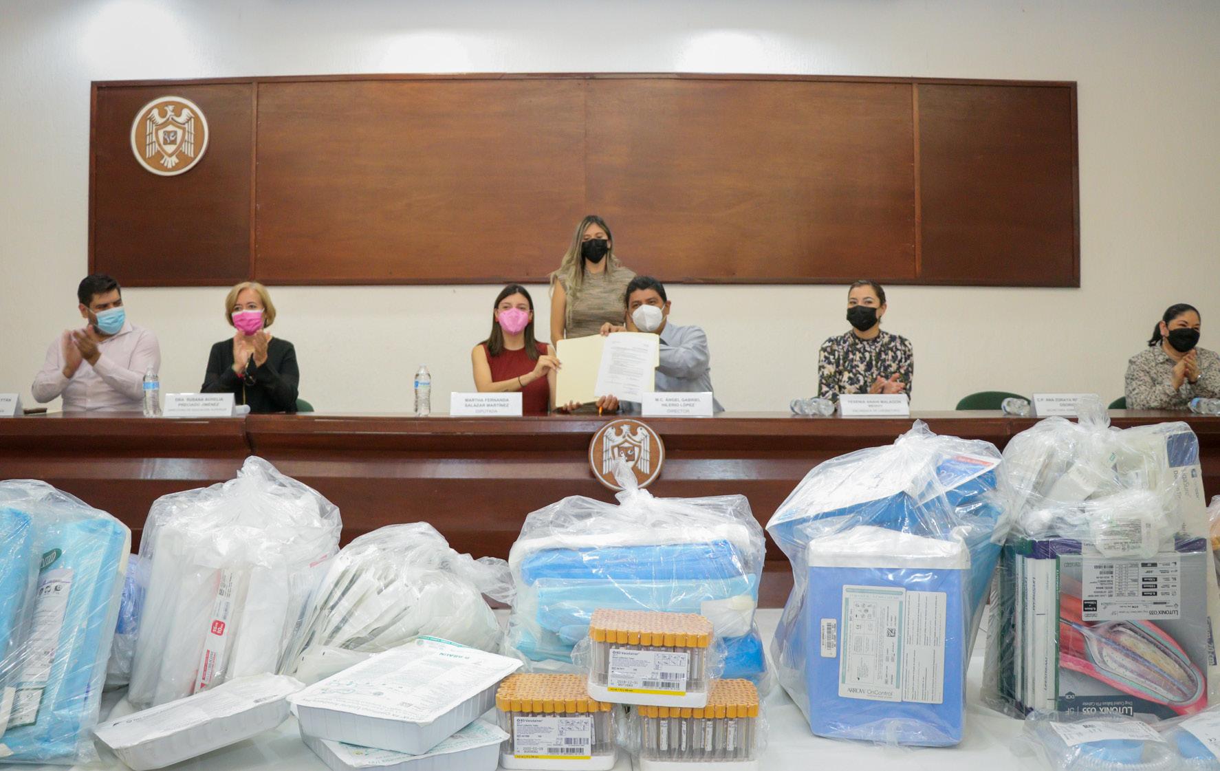 quien gestionó estos insumos con una fundación conformada por migrantes mexicanos establecidos en Estados Unidos, llamada United Across Border; “hemos gestionado estos insumos para que puedan practicar y sean esos profesionistas que necesitamos, porque hemos dejado muy solo al sector salud. La idea es que estos insumos estén continuamente llegando a la Facultad de Enfermería y a la de Medicina, así como a otros sectores y centros médicos”.