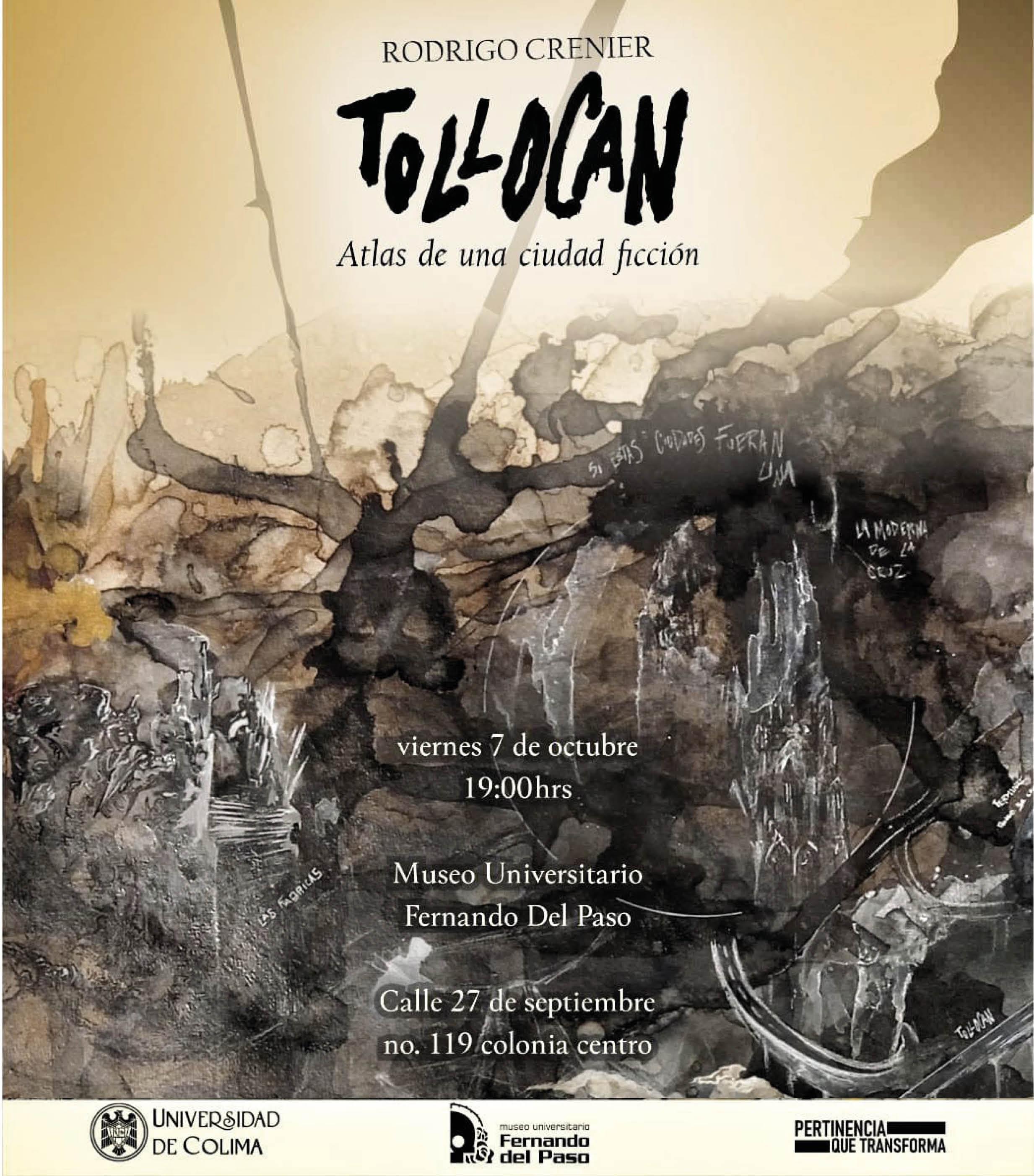 El Museo Fernando del Paso invita al público en general a la inauguración de la exposición “Tollocan: Atlas de una ciudad perdida”, del joven artista toluqueño Rodrigo Crenier, este viernes 7 de octubre a partir de las 7 de la tarde.