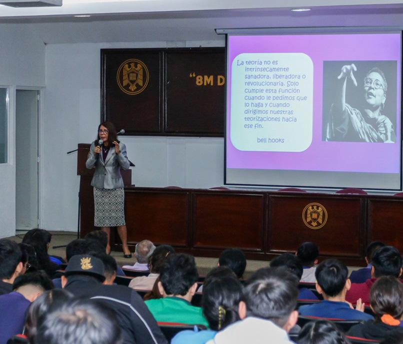 La doctora Nancy Elizabeth Molina Rodríguez, directora de la Facultad de Psicología e integrante del Comité para la Atención Integral de la Violencia de Género en la Universidad de Colima, compartió con estudiantes y docentes algunas ideas sobre cómo lograr una intervención educativa con perspectiva de género.