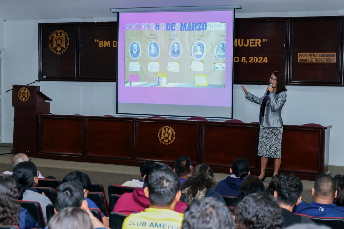 Molina Rodríguez mencionó algunas estrategias que han implementado en el plantel que dirige, como: Incluir en el plan curricular materias orientadas a la igualdad y equidad de género, sexualidad e inclusión; promover modelos educativos donde las mujeres puedan ser incluidas y generar espacios compartidos donde se cuestionen las relaciones de poder desde la perspectiva de género.