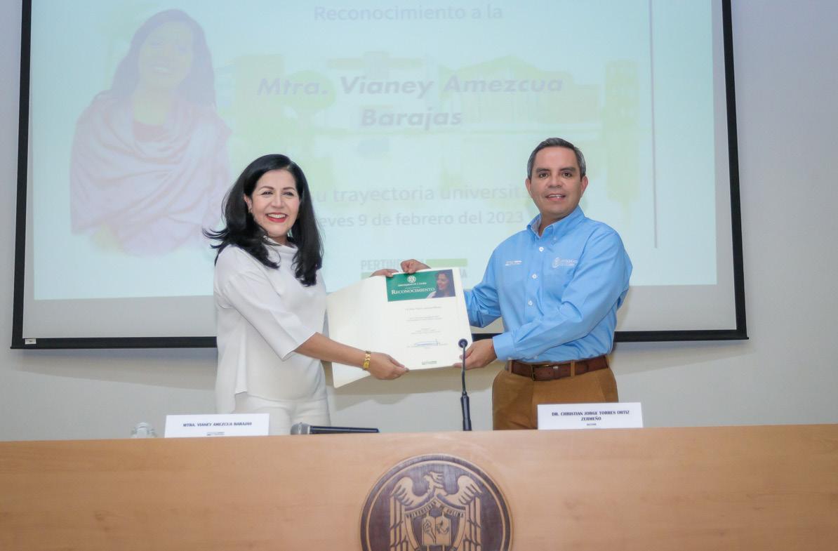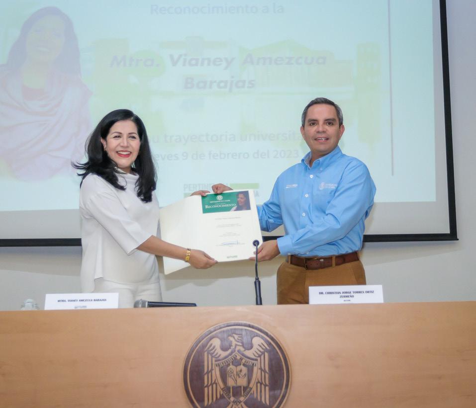 Entregan reconocimiento a Vianey Amezcua por más de 30 años de trabajo en la UdeC
