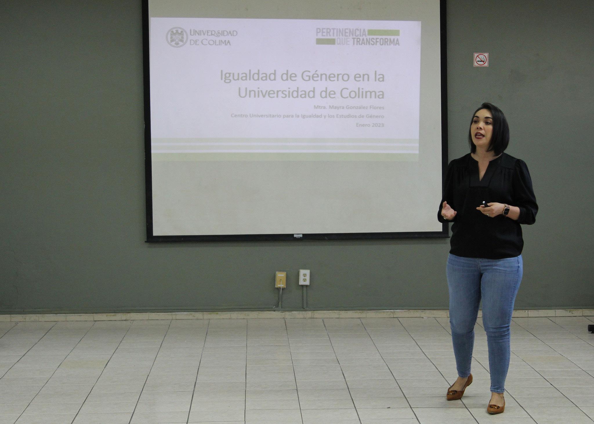 Por último, Lourdes Ramírez Camacho abordó el tema de “Derechos humanos en el marco del protocolo para la atención integral de la violencia de género”, dando a conocer la ruta que debe seguirse, así como la reflexión sobre las conductas que no serán toleradas en la Universidad de Colima.