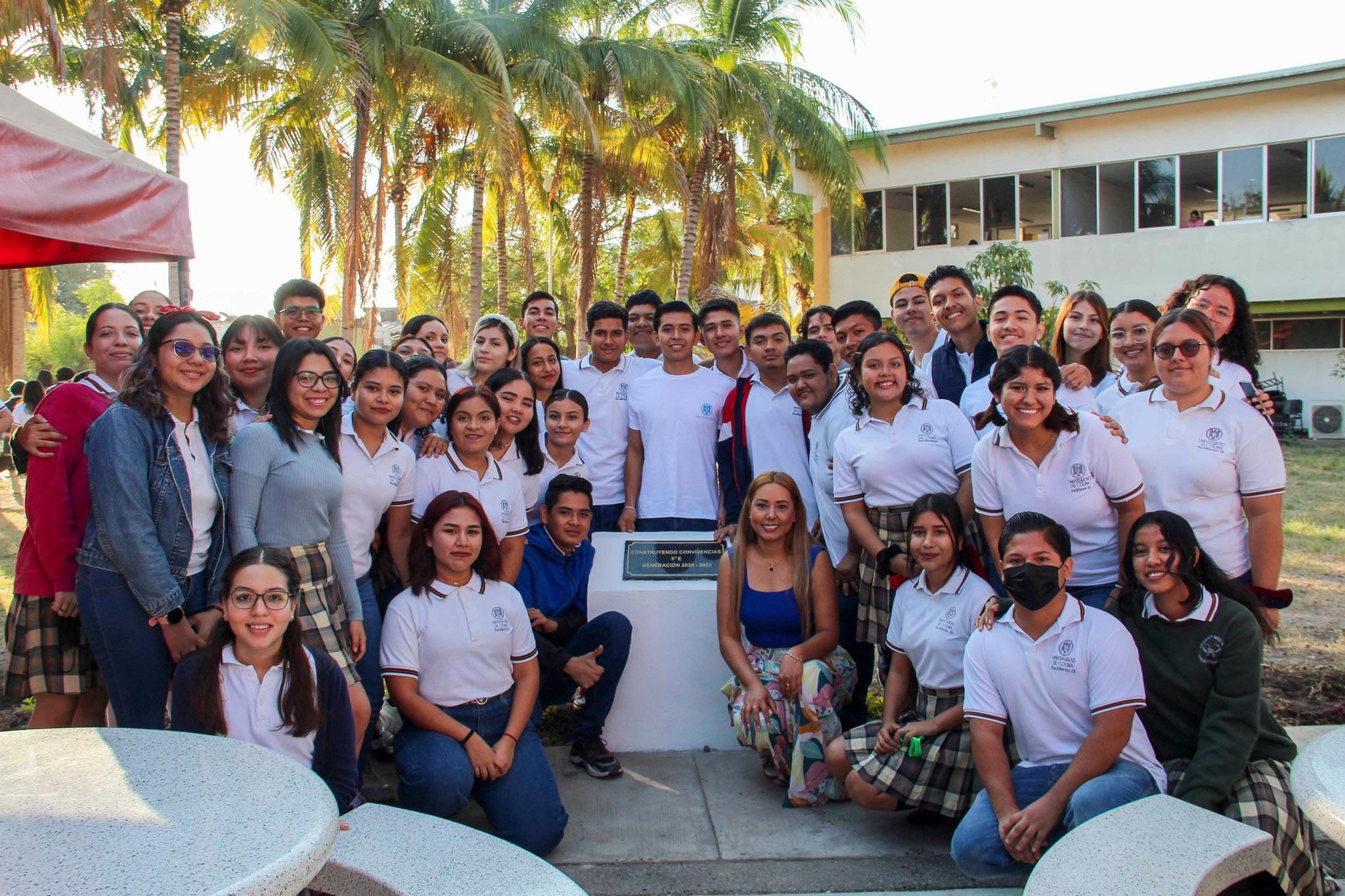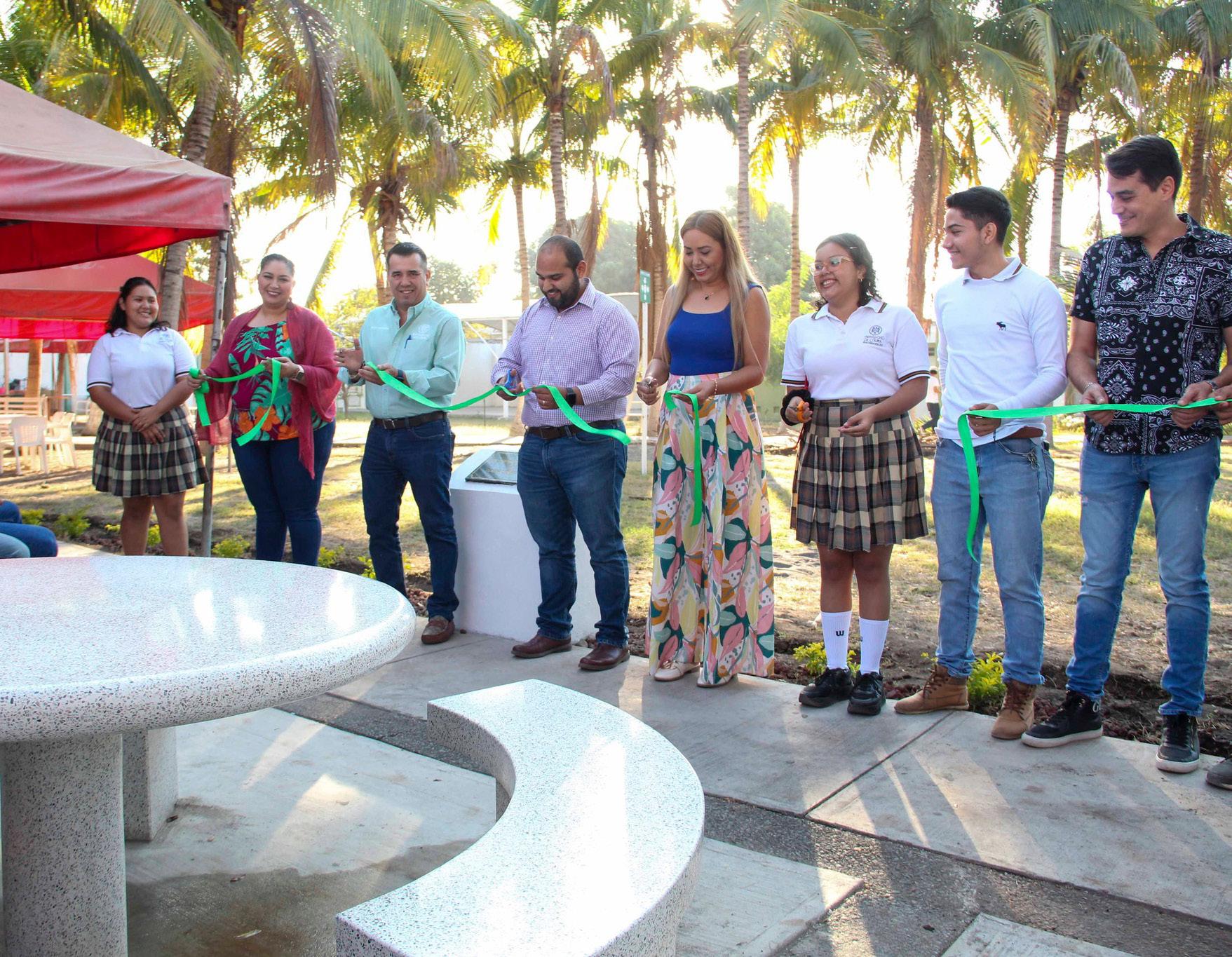 Estudiantes del Bachillerato 20 del campus Tecomán entregaron 4 comedores de concreto a la comunidad universitaria del plantel, como parte del proyecto “Construyendo Convivencias”, que se deriva a su vez de la materia de Gestión de Proyectos, que imparte la docente Guadalupe Torres Mendoza.