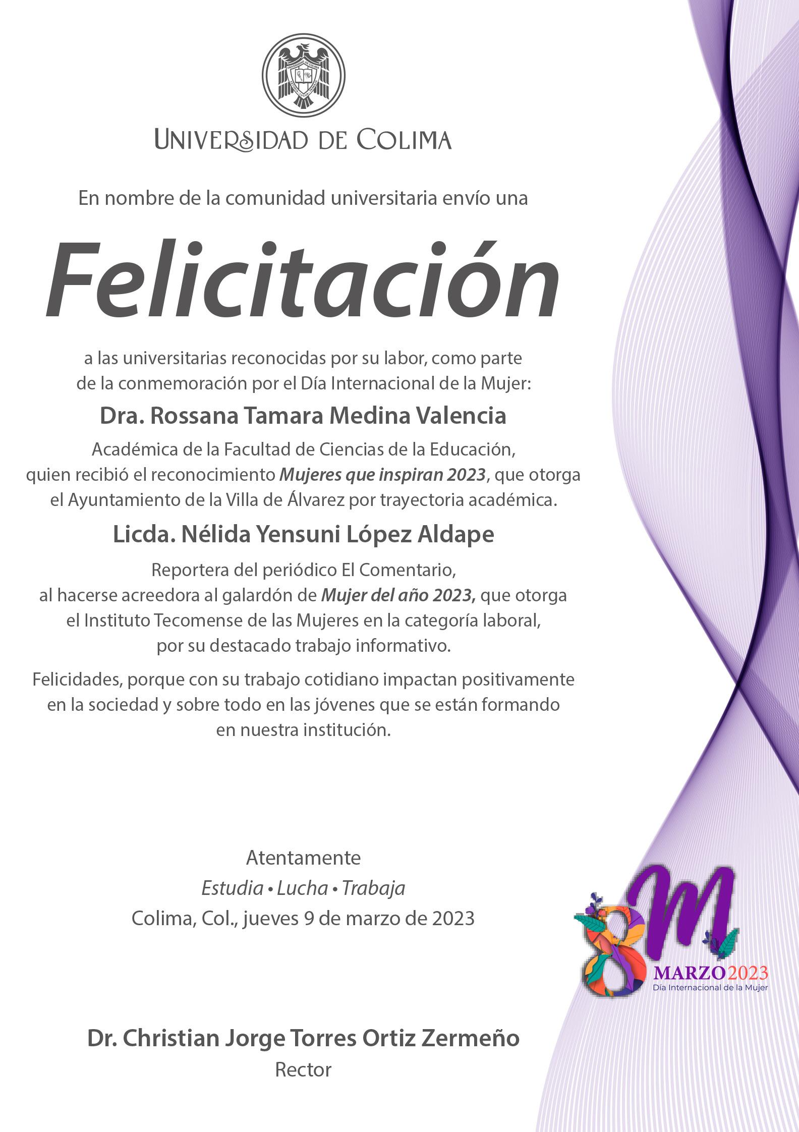 Agregó que “somos muy afortunadas por estar en un sistema como la Universidad de Colima, donde se trabaja con temas de género, y espero que esta perspectiva la puedan