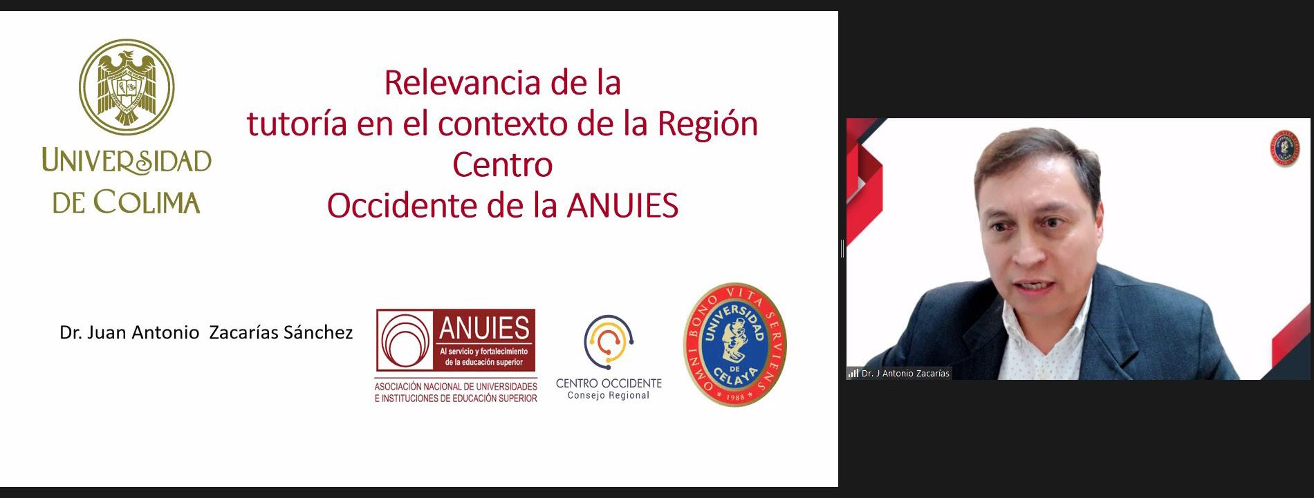 dinador de la Red Tutoría Anuies, Región Centro Occidente. Antonio Zacarías dijo que la acción tutorial “es una serie de acciones coordinadas por parte de docentes tutores, asesores académicos y orientadores psicopedagógicos, que tiene el fin de disminuir al mínimo el bajo desempeño y elevar el aprovechamiento integral del estudiante”. También habló sobre las estrategias y acciones implementadas por instituciones educativas para brindar apoyo y orientación a los y las estudiantes, con el fin de promover su desarrollo académico, personal y profesional. Estos programas suelen incluir actividades de tutoría individual o grupal, seguimiento académico, asesoramiento vocacional, entre otros.