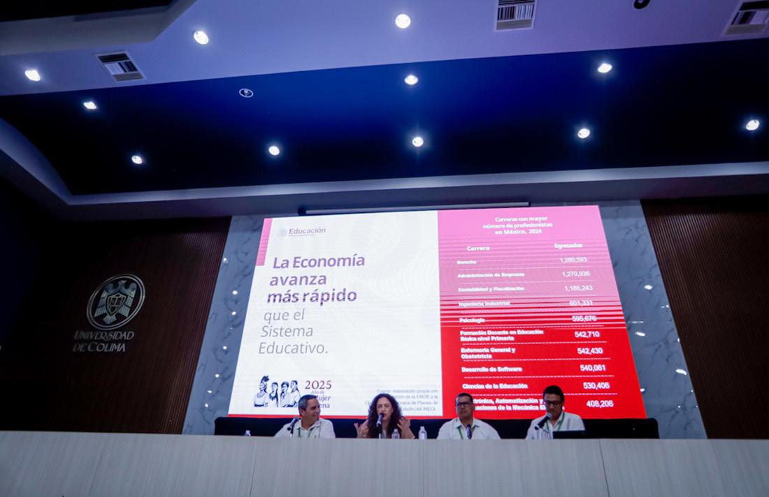 Como parte de la Conferencia Internacional Anuies 2025, se realizó el panel “Plan México: desafíos y oportunidades para la educación superior”, con la participación de Graciela Báez Ricárdez, directora general de Cooperación y Vinculación Educativa de la SEP; Gaudencio Lucas Bravo, secretario académico y de Innovación Tecnológica del Tecnológico Nacional de México (TecNM); y Julio César Leyva Ruiz, director general de Educación Superior para el Magisterio. Fue moderado por el Rector de la Universidad de Colima (UdeC), Christian Jorge Torres Ortiz Zermeño.