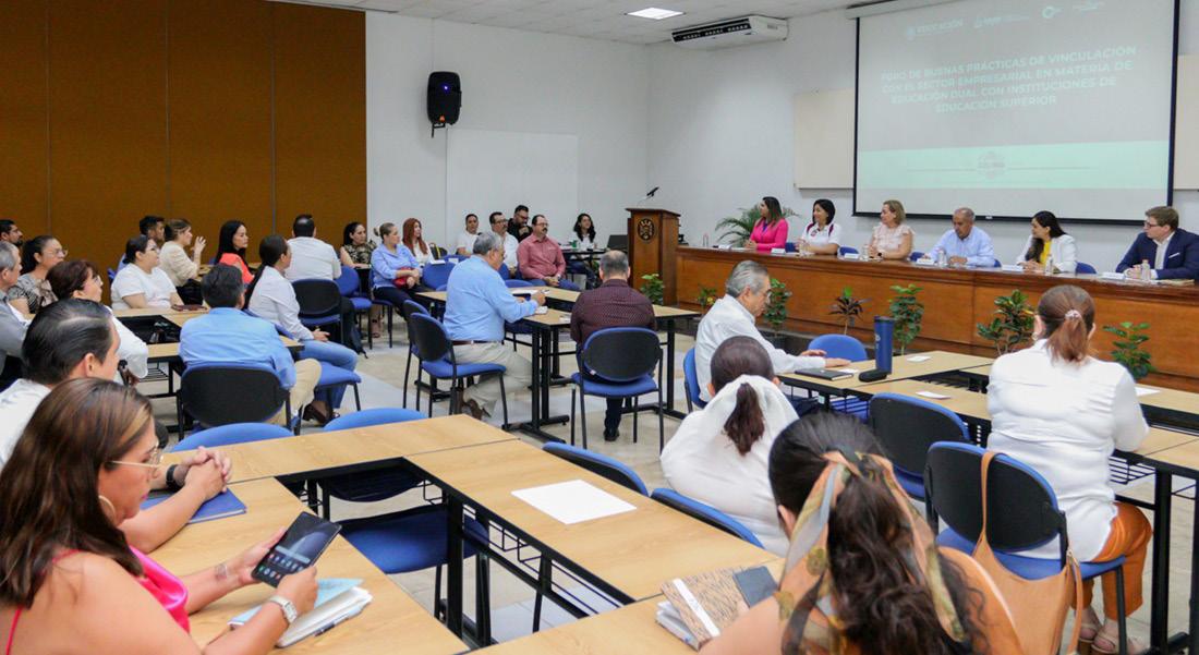 La educación DUAL es una opción educativa en la modalidad mixta donde el proceso de enseñanza-aprendizaje se realiza tanto en la escuela como en la empresa, con lo que se favorece el desarrollo humano integral del estudiante y se facilita su inserción laboral. Durante la sesión, el sector empresarial y educativo abordaron el marco general para la educación DUAL, compartieron experiencias respecto a la vinculación de las IES con el sector empresarial, conocieron los estándares de competencia y discutieron y analizaron el crecimiento y consolidación de la educación dual superior en el estado.