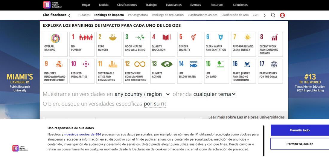 ubicarse en el lugar 16 del ranking Times Higher Education de las Universidades Top que persiguen los Objetivos de Desarrollo Sostenible (ODS) 2024 de Naciones Unidas.