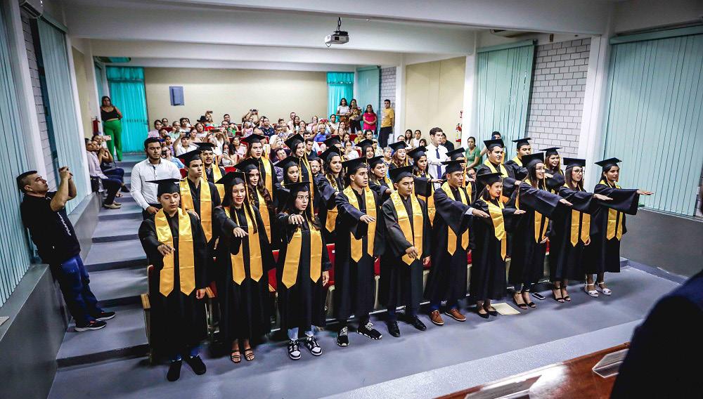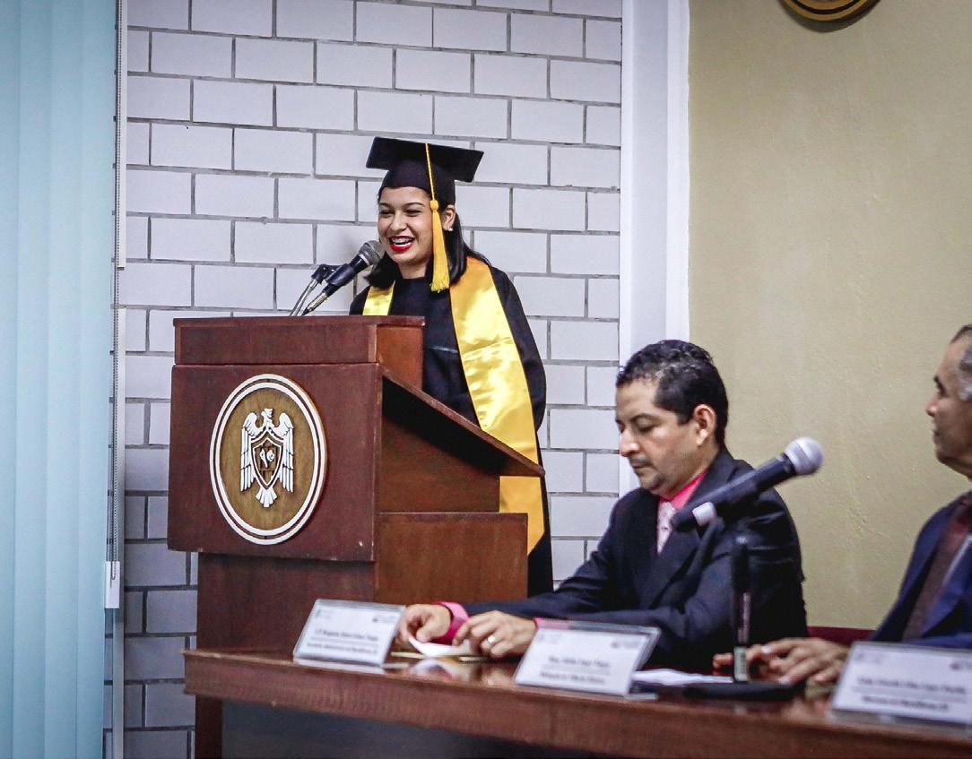 En nombre de los graduados, Samanta Fuentes mencionó que, con este acto se cierra un capítulo en sus vidas, “uno que nos ha llevado a experimentar alegrías, cansancio, risas, amistades, pero sobre todo nos llena de orgullo constatar que tras grandes esfuerzos y sacrificios hemos logrado la meta. Agradezco a nuestros maestros y a la Universidad, que nos han formado como jóvenes responsables, comprometidos con las tareas de la vida diaria”.