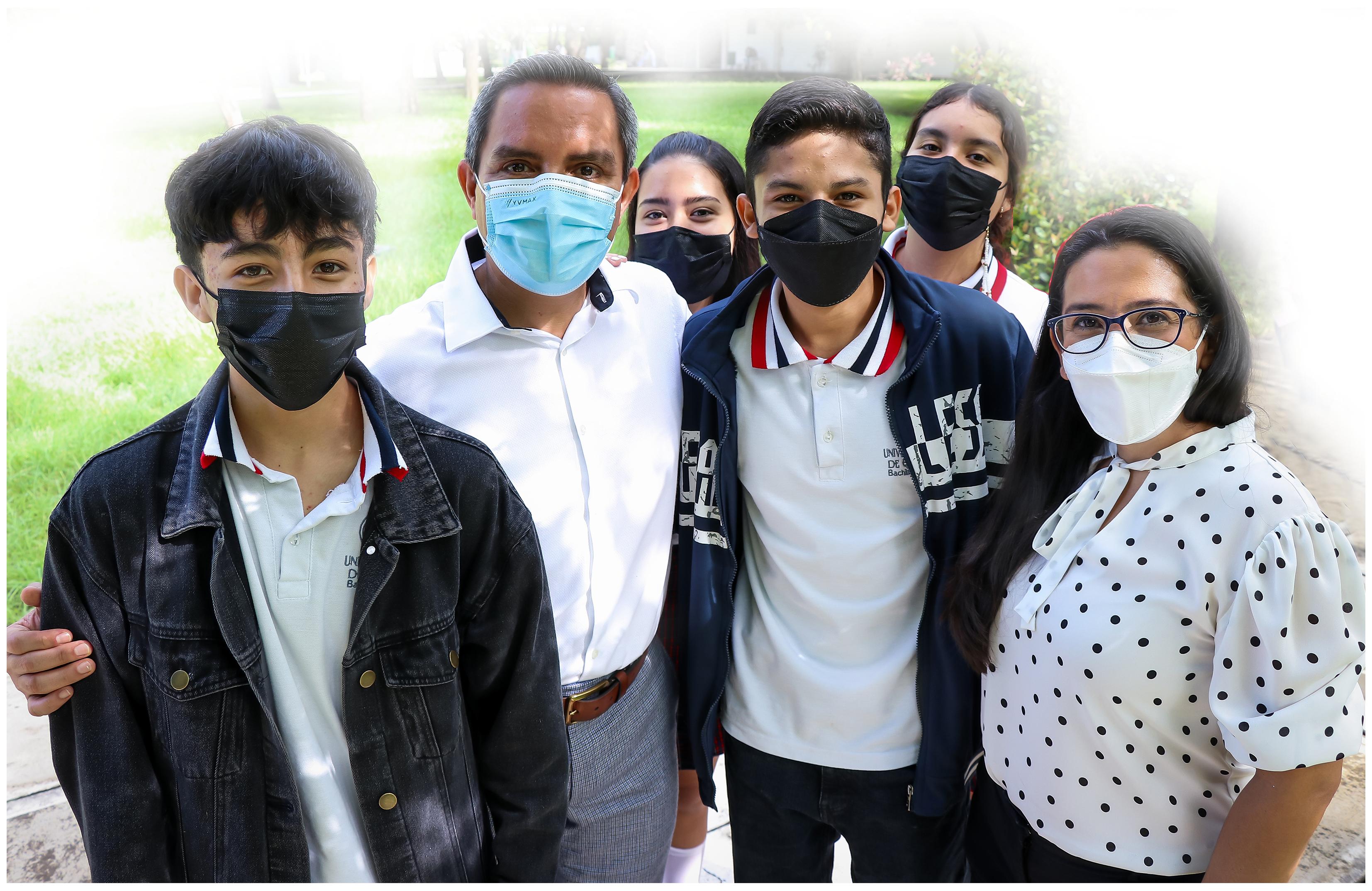 Alberto Bricio, Alejandro Aguayo, Adriana Isabel Sánchez y Mayra Macías, directora del Bachillerato 18.
