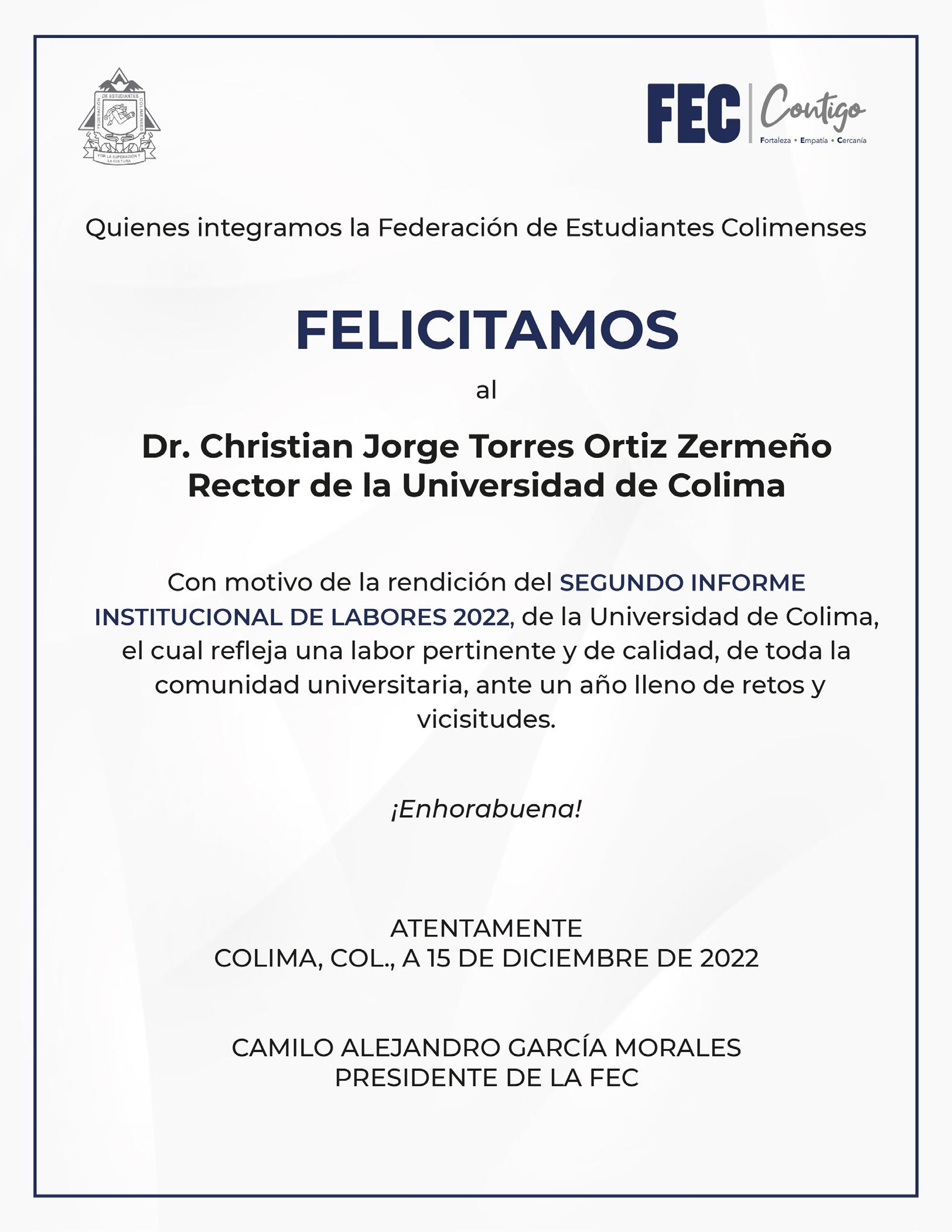 La Universidad de Colima es una institución comprometida con el desarrollo del estado de Colima y con la mejora de la calidad de vida de la sociedad. Por eso, y por mucho más, al cierre de este año 2022 tenemos muy buenas noticias que queremos compartir con las y los colimenses.