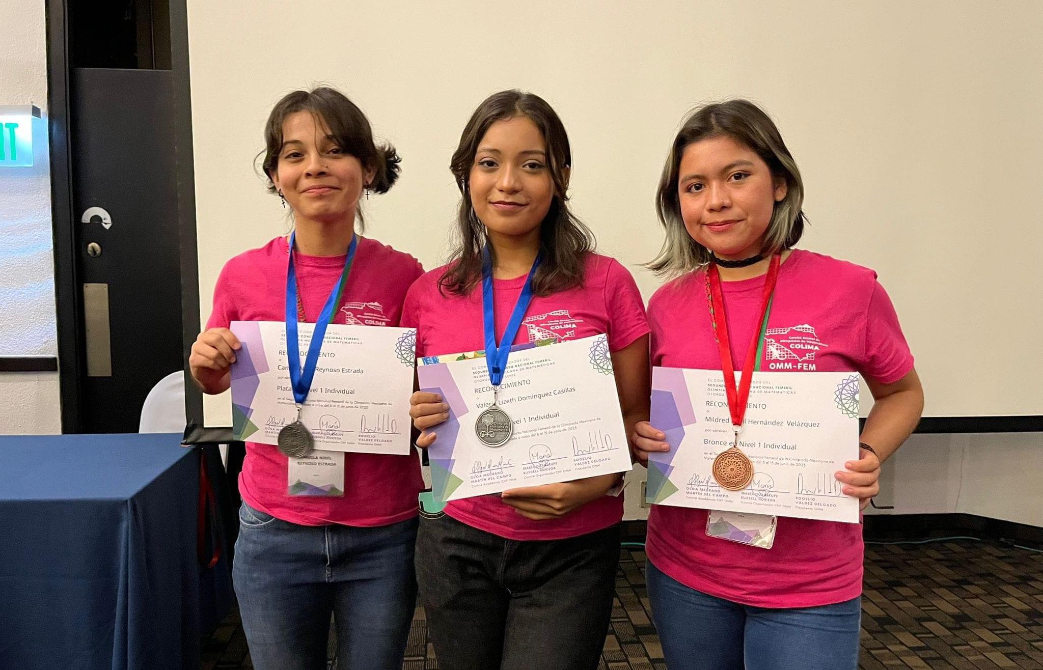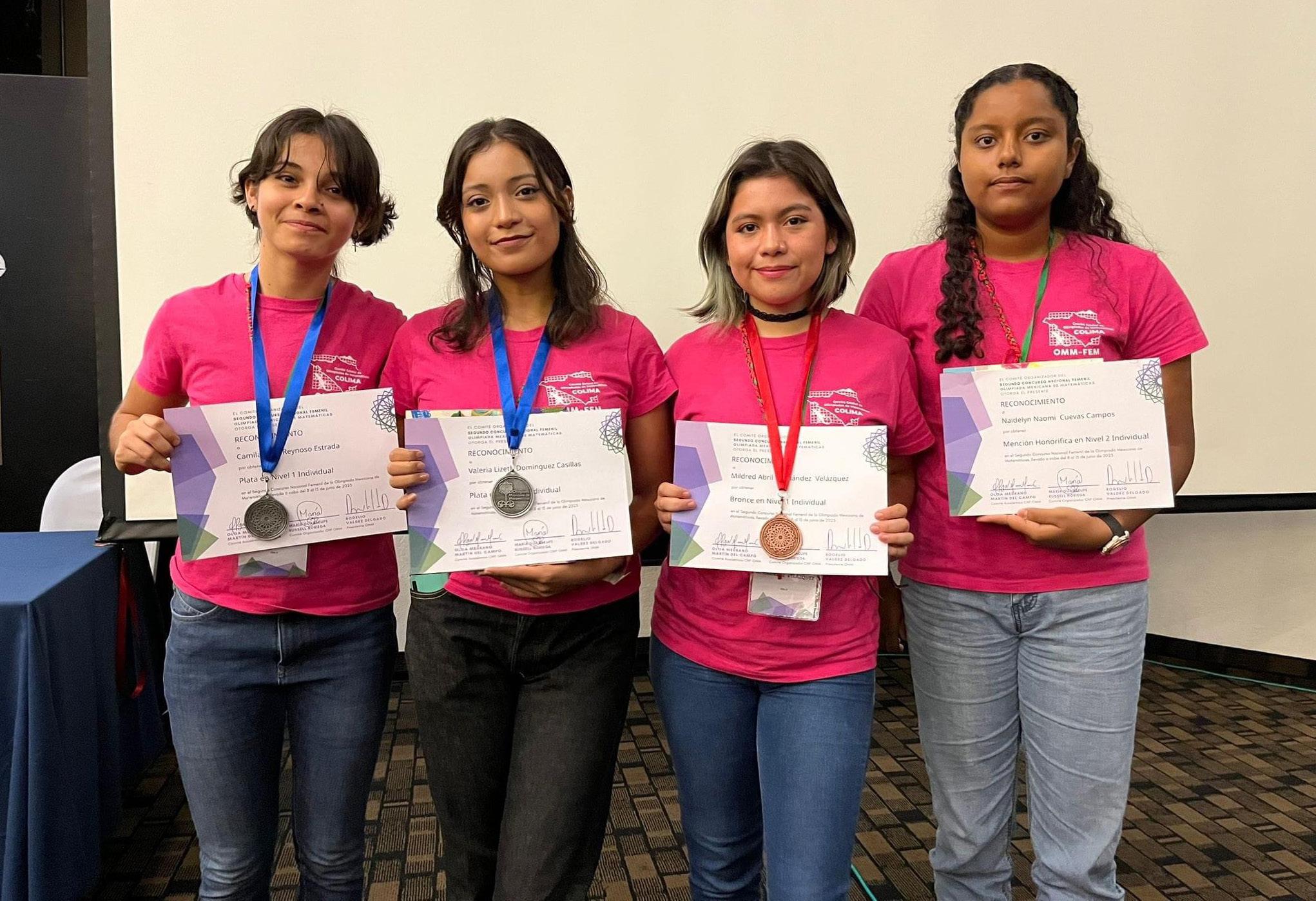 Las ganadoras fueron, en el Nivel 1, Camila Nirel Reynoso Estrada, con medalla de plata, del Bachillerato 4; Valeria Lizeth Domínguez Casillas, también con medalla de plata, del Bachillerato 9 y Mildred Abril Hernández Velázquez, con medalla de bronce, del Bachillerato 4. En el nivel 2, la mención honorífica fue para Naidelyn Naomi Cuevas Campos, del Bachillerato 20. Las otras 2 integrantes de la selección Colima son Jimena Deniz Ruiz e Itzel Alejandra Rodríguez Lepe, también alumnas de la Universidad de Colima. Gracias al trabajo de todas ellas, Colima ocupa ahora el lugar número 11 por estados en este concurso.