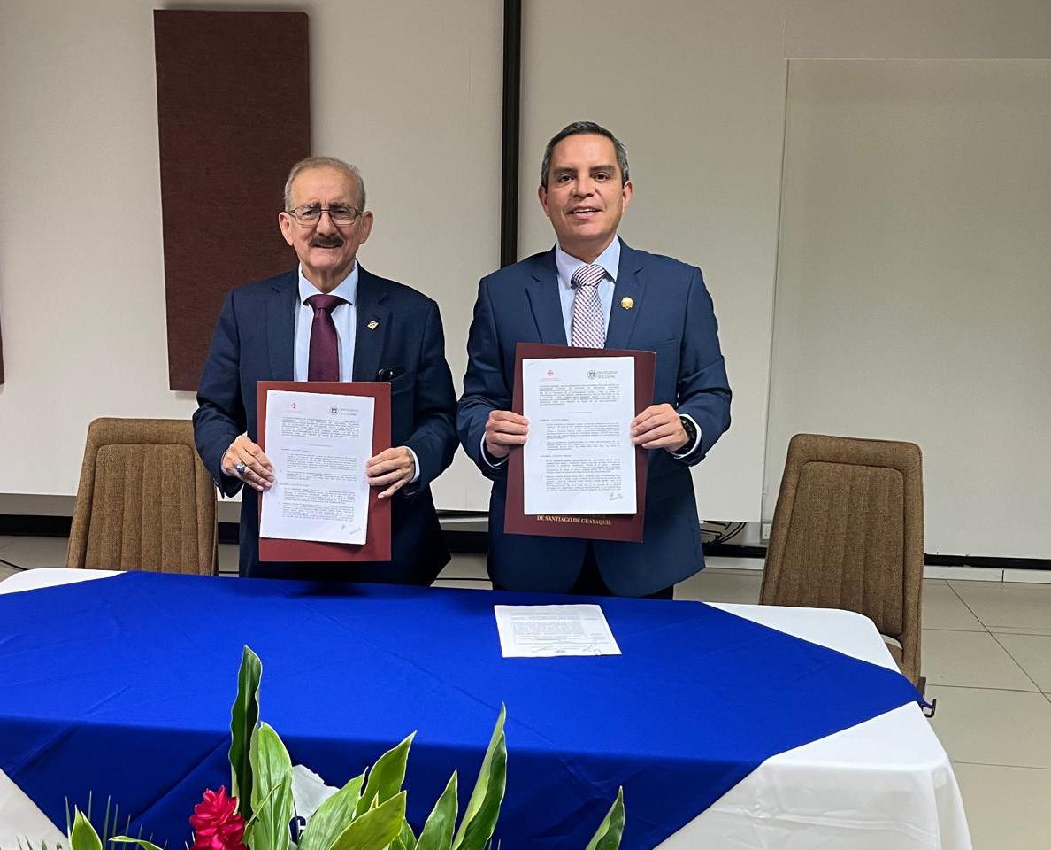 El segundo convenio fue con la Universidad Católica de Santiago de Guayaquil, en Ecuador. Tiene como objetivo fortalecer el trabajo conjunto en materia de formación, investigación, difusión cultural y educación