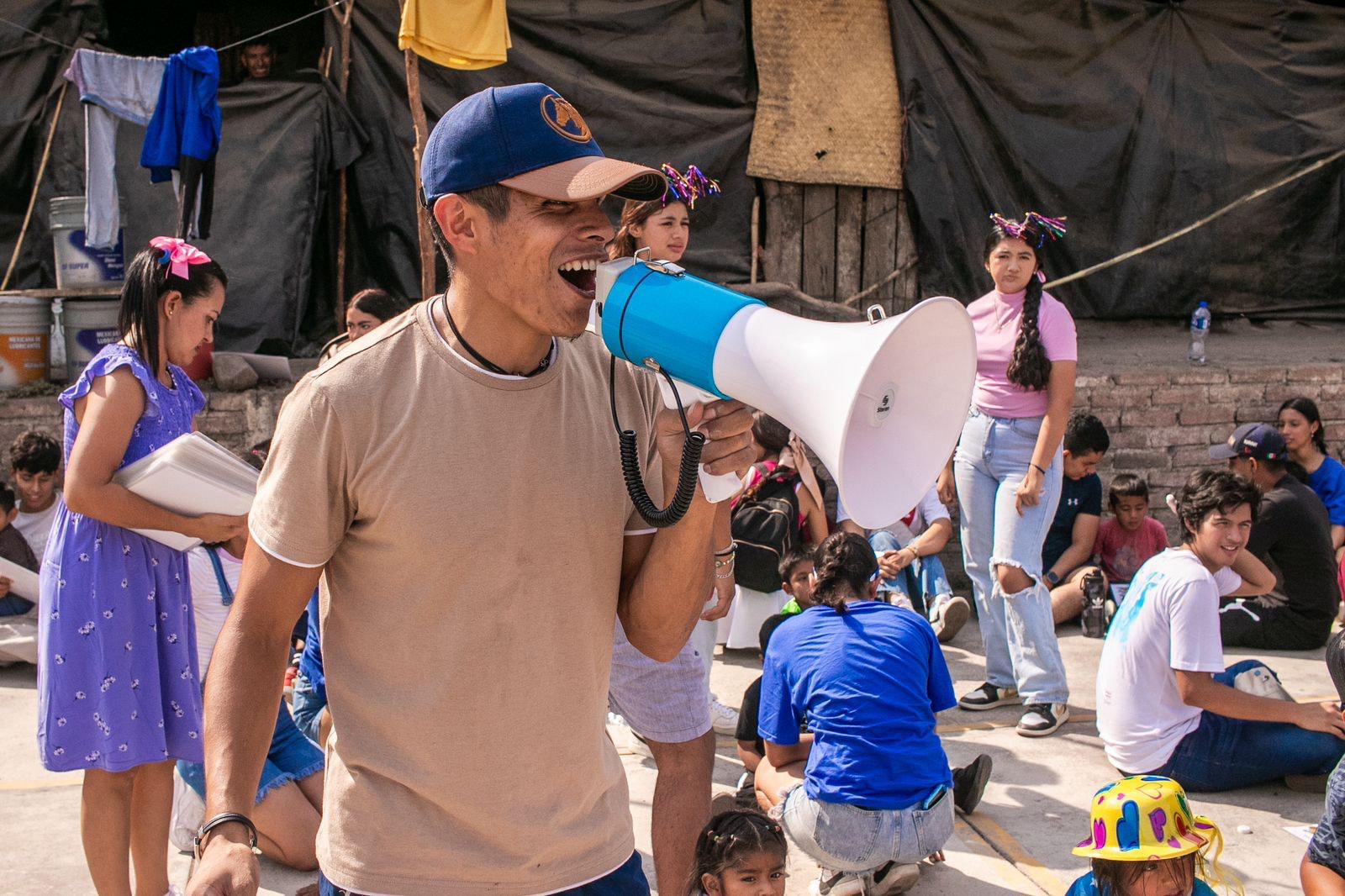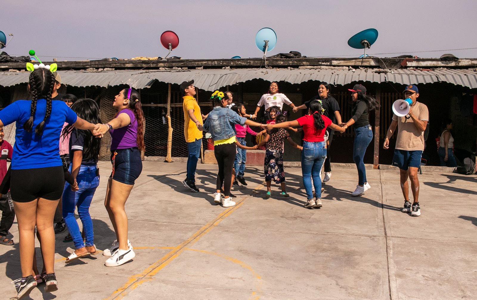 Estudiantes del Bachillerato 34 de la Universidad de Colima, regalaron momentos de alegría y diversión a las y los hijos de trabajadores de la caña de azúcar en el albergue cañero Plaza de Toros en Quesería, en el marco del Día del Niño y la Niña.