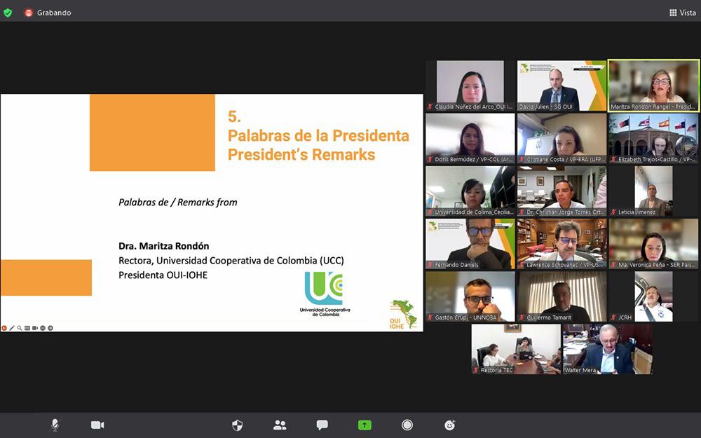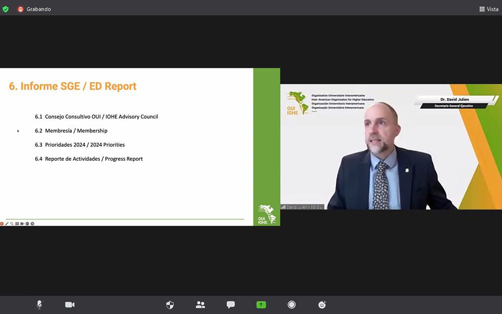 mes del secretario general ejecutivo, David Julien y de Maritza Rondón, presidenta de OUI-IOHE (Organización Interamericana para la Educación Superior), quienes mostraron los logros obtenidos y los eventos académicos por venir. La próxima reunión de trabajo será en la Universidad Cooperativa de Colombia, en octubre de 2024.