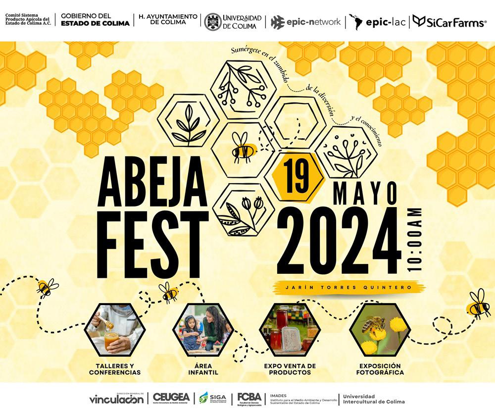 región, y una exposición fotográfica que invita a admirar la belleza de estos insectos y su entorno natural. Participan en este festival: el Comité Sistema Producto Apícola del estado de Colima, el Gobierno del estado de Colima, el Ayuntamiento de Colima, la UdeC, el Imades, SicarFarms, la Universidad Intercultural, la Facultad de Ciencias Biológicas y Agropecuarias de la UdeC y la Asocia-