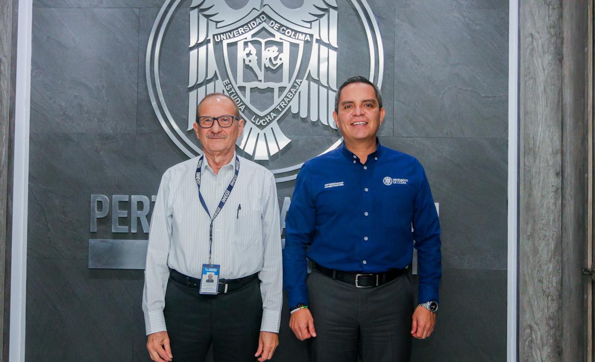 El Rector de la Universidad de Colima (UdeC), Christian Jorge Torres Ortiz Zermeño, recibió en su despacho a Octavio Grajeda Guzmán, coordinador del Instituto Nacional de Estadística y Geografía (inegi) en Colima.
