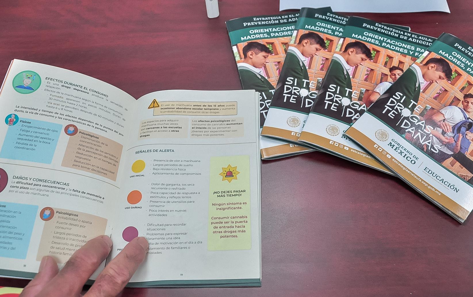 Martín Robles de Anda, director general de Educación Media Superior, comentó que en la segunda etapa entregarán esa guía informativa a las madres y padres de familia. El documento, que consta de 48 páginas, brinda información sobre las consecuencias y daños de consumir drogas como el fentanilo, la metanfetamina, la cannabis o marihuana, el alcohol, las benzodiacepinas, y las consecuencias que genera en el organismo los vapeadores y el tabaco.