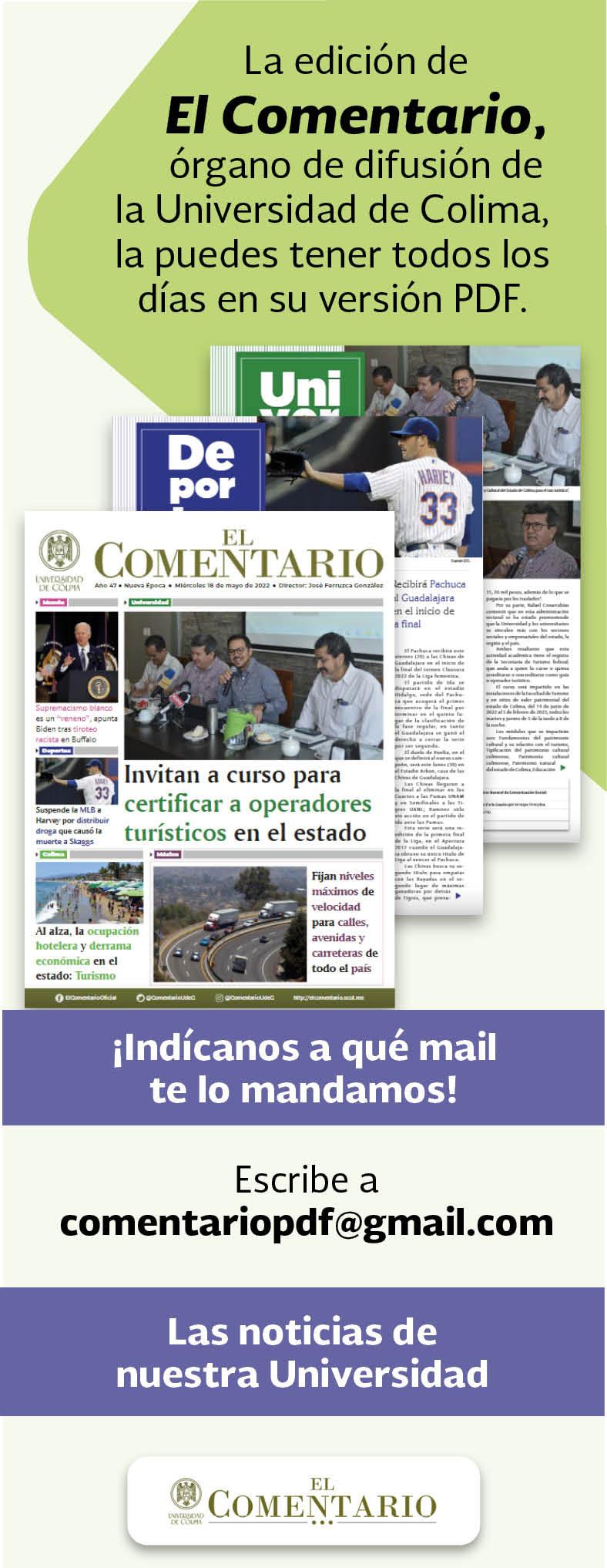 vienen de Michoacán, si tú vas al Bachillerato de Suchitlán, varios vienen de Jalisco”, apuntó. Destacó que esa toma de decisiones plantea varias aristas y por lo que no se pueden asumir en función de un solo grupo. “Que los estudiantes estén tranquilos, que sus familias, padres, madres, estén tranquilos, les vamos a avisar como lo hacemos de manera oportuna, lo que sigue para la próxima semana”.