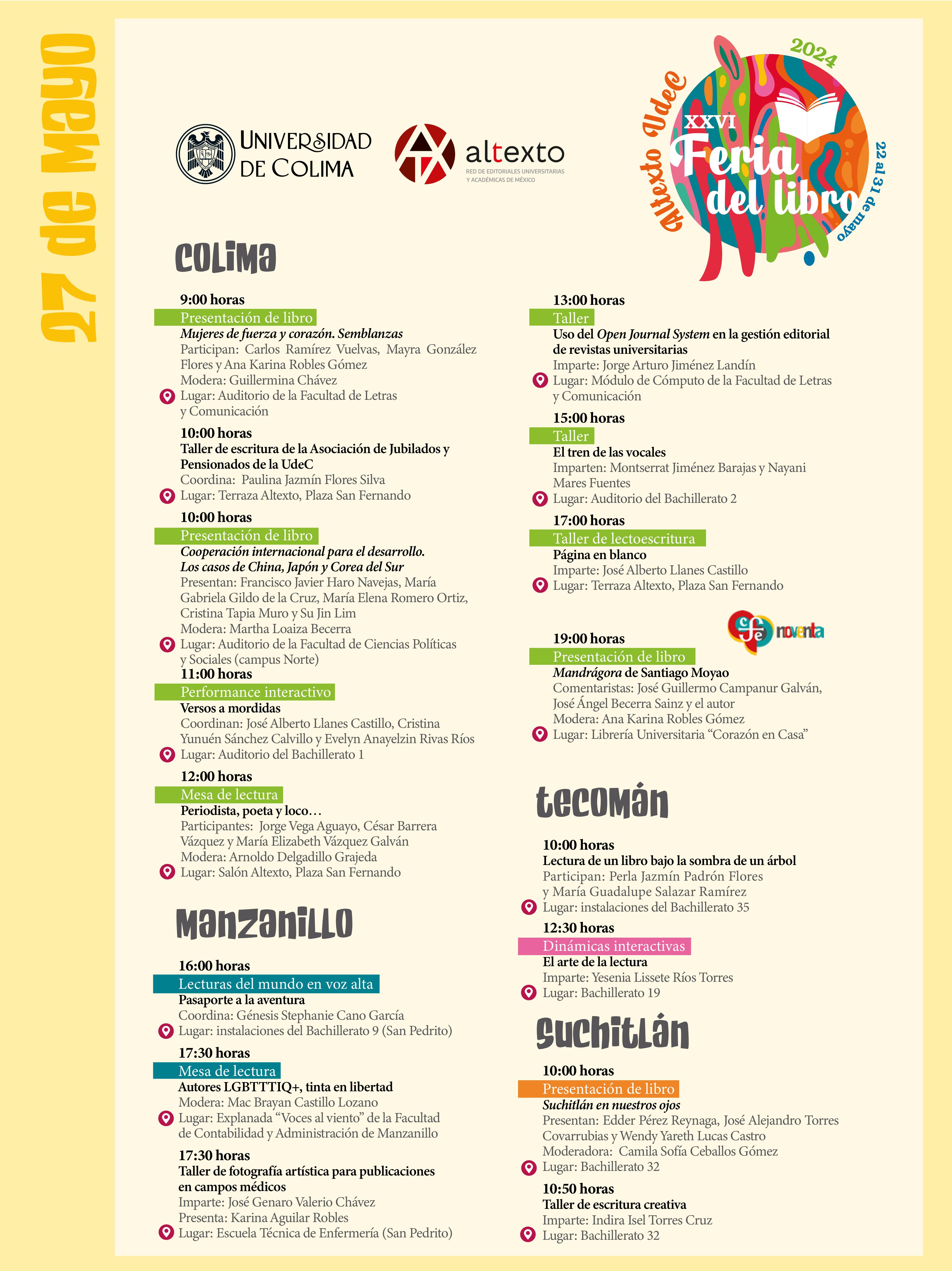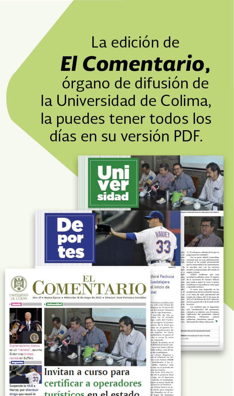 La fecha límite para la recepción de propuestas es el 16 de junio del 2024. La convocatoria puede ser consultada en el sitio https://www.ucol. mx/convocatorias/c-1021.htm.