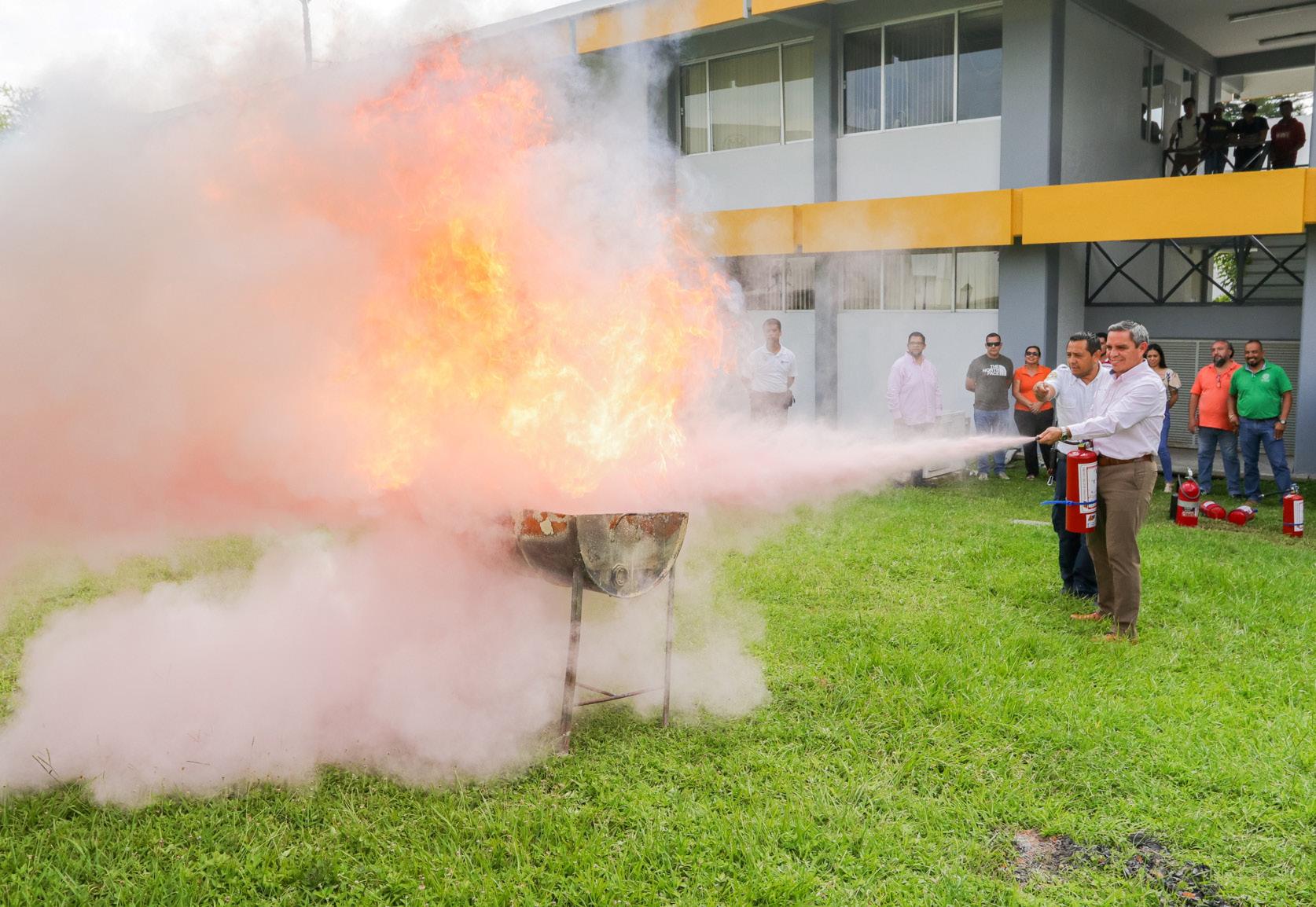 Christian Jorge Torres Ortiz Zermeño, Rector de la Universidad de Colima, asistió a la capacitación en combate a incendios que realiza la Unidad de Protección Civil de esta Casa de Estudios. Durante el curso, el Rector y los asistentes aprendieron el uso y manejo correcto del extintor.