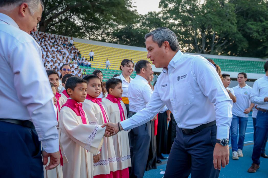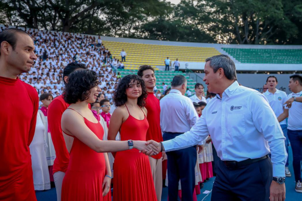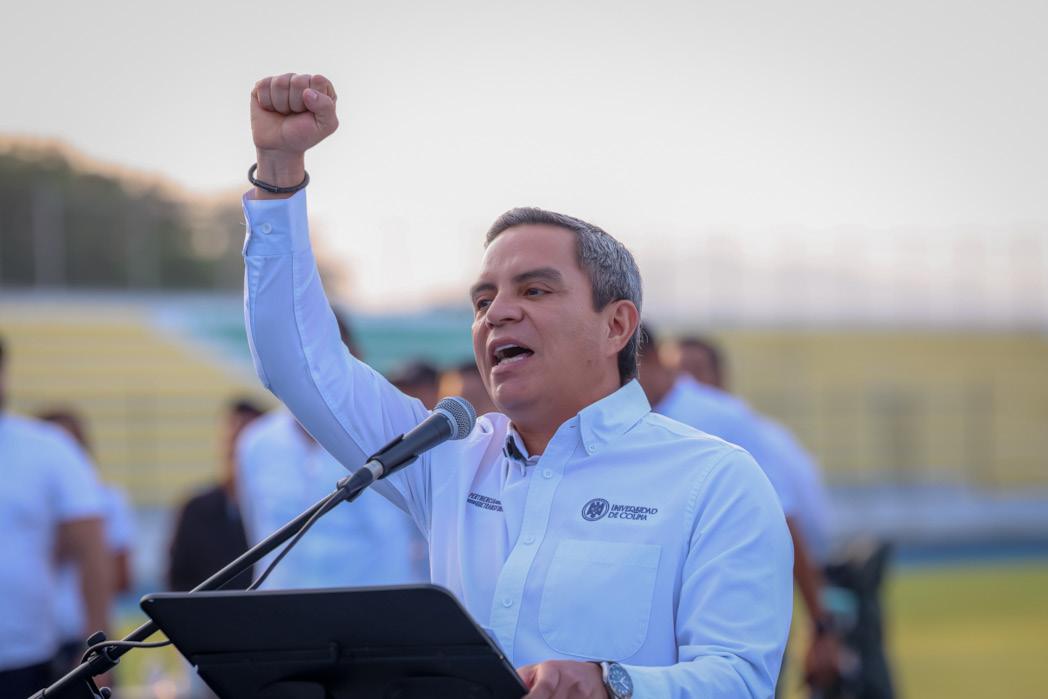 Al tomar la palabra, el Rector de la Universidad de Colima, Christian Jorge Torres Ortiz Zermeño, enfatizó que durante su gestión ha insistido en cuidar de las juventudes colimenses mediante una fórmula de 3 ejes: educación, cultura y deporte. “Por