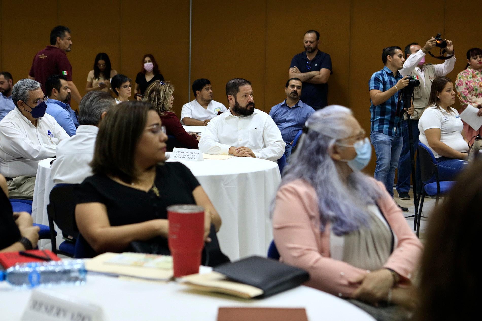 También estuvieron en el presídium: Juan Carlos Montes, magistrado presidente del H. Supremo Tribunal de Justicia del Estado; y Evangelina Bustamante, diputada presidenta de la LX Legislatura del H. Congreso del Estado.