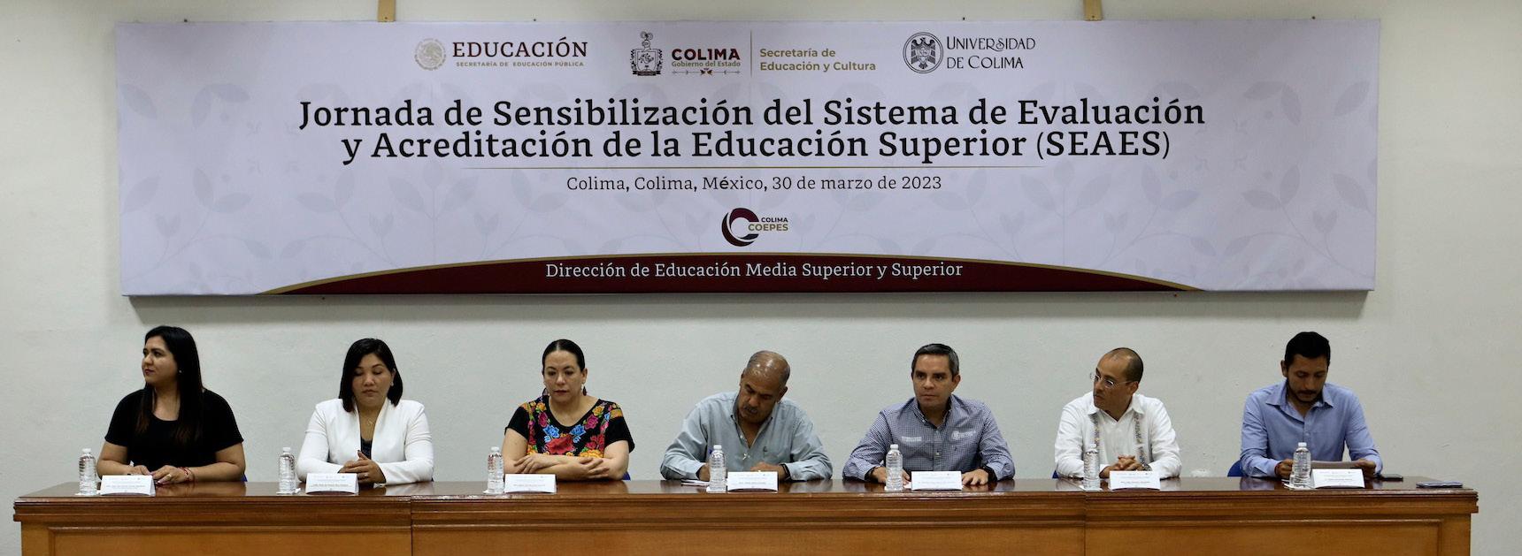 Con el propósito de contribuir al proceso de mejora continua de la educación, el Rector de la Universidad de Colima, Christian Torres Ortiz Zermeño, y Adolfo Núñez González, secretario de Educación y Cultura en el estado, inauguraron las Jornadas de Sensibilización del Sistema de Evaluación y Acreditación de Educación Superior ( S eae S ), en las que 52 instituciones educativas del estado, públicas y privadas, fueron