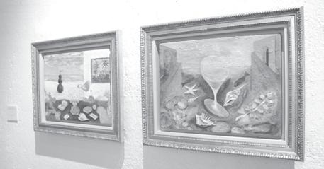 muertas del pintor colimense Alfonso Michel. Mientras que otra de sus exploraciones plásticas más productivas la desarrolló a través de la abstracción de las formas, dando origen a sus piezas más matéricas y experimentales, cargadas de texturas y elementos orgánicos que incorporaba a los lienzos.