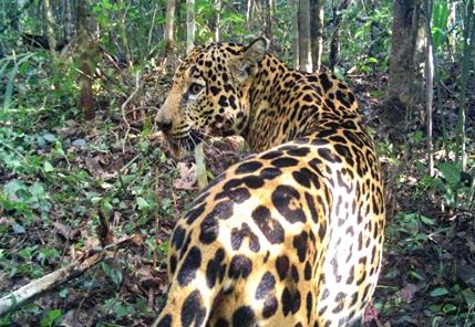 Jaguar en Ejido de San Pedro Bacab, Yucatán con cámara trampa Cuddeback E3.