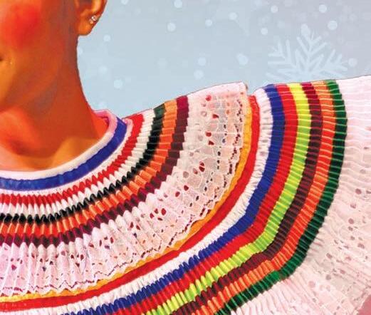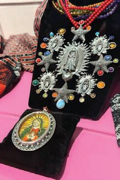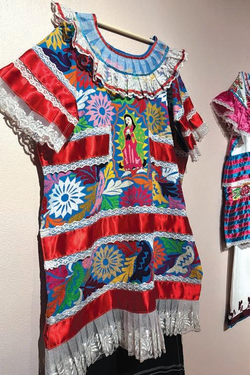 por la artista textil y coleccionista Linda Hanna, destaca técnicas ancestrales provenientes de comunidades de Oaxaca y de otros estados. Desde tejidos de zonas montañosas y templadas hasta bordados de regiones cálidas y costeras, cada obra revela un lenguaje propio en colores, materiales y formas de representación. Lo que une a esta diversidad es el impulso de homenajear a La Morenita desde el trabajo hecho en familia.