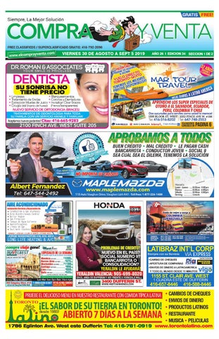 Free Classified ads for the latin Canadian community. Clasificados GRATIS para la comunidad latina Canadiense. Compra y Venta de Productos y Avisos de orden de servicio. El Semanario de Compra y Venta de clasificados GRATIS m谩s utilizado por la comunidad latina en Ontario Canada desde 1993. La mejor soluci贸n para comprar, vender o alquilar casi cualquier cosa. Art铆culos nuevos y usados, autom贸viles, bienes raices, buscar trabajo, ofrecer empleo, servicios, imigraci贸n y mucho m谩s. Pr谩cticamente en todo Canad谩. Recoja su copia, disponible todos los Viernes. Llamenos 416-792-2090 o por WhatsApp al 647-881-6333. Canada's Spanish newspaper for FREE classifieds and want ads used above all others in the Canadian Latin community since 1993. The Latin way to buy, sell or rent nearly anything. New and used items, vehicles, real estate, employment, services, immigration and more, practically anywhere in Canada. Pick up a copy available every Friday at a store near you and remember you can post your classified for FREE! Contact us for more information. Contact us 416-792-2090 or WhatsApp 647-881-6333.