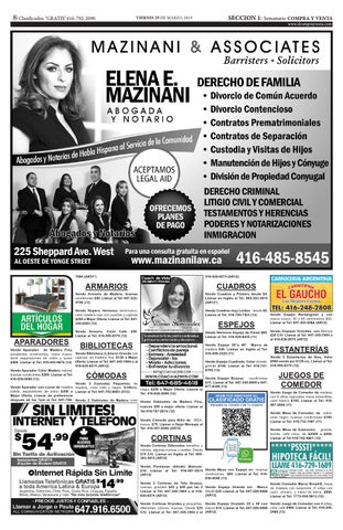 Vendo Aparador de Madera Fina, excelentes condiciones, como nuevo, Vendo Biblioteca (Librero) Grande con tiene separaciones de vidrio y luces. cajones, en madera fina. $150 o Mejor $500. Llamar al Tel: 416-443-9876 (12) Oferta. Llamar al Tel: 647-345-1904 o al 416-830-8574 (AR12) Vendo Aparador Color Madera natural, buenas condiciones $200. Llamar al Tel: 416-939-0089 (13) Vendo 2 Comodas Pequeñas, de Vendo Aparador con Luces de madera madera, color cafe y negra. $100c/u. negro $250 o Mejor Oferta. Llamar al sólida, separadores de vidrio $300 o Llamar al Tel: 647-702-6883 (G12) Tel: 416-838-0599 (12) Mejor Oferta. Llamar de preferencia después de las 7pm al Tel: 647-769- Vendo 2 Gabinetes de Madera color Vendo Gabinetes de Madera Fina, nuevos $50 o mejor oferta. Llamar al Tel:416-767-5074 (12)