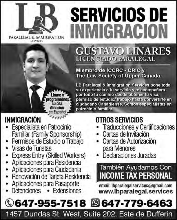 WhatsApp 647-881-6333 VIERNES 10 DE MAYO, 2024 3 immigration services CONSULTOR DE INMIGRACIÓN SERVICIO PROFESIONAL SERVICIOS DE INMIGRACIÓN CANADIENSE A SU ALCANCE A SOLO DOS CUADRAS DE LA ESTACIÓN DUFFERIN www.canadanordic.com 1081 Bloor St W Suite #303 CONTÁCTANOS 416-534-0040 HABLAMOS ESPAÑOL Permisos de Estudio y Trabajo