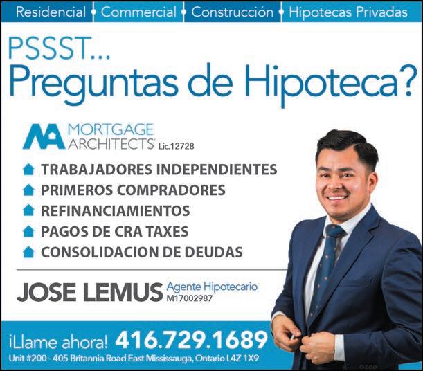 WhatsApp 647-881-6333 VIERNES 2 DE DICIEMBRE, 2022 3 immigration services CONSULTOR DE INMIGRACIÓN SERVICIO PROFESIONAL SERVICIOS DE INMIGRACIÓN CANADIENSE A SU ALCANCE A SOLO DOS CUADRAS DE LA ESTACIÓN DUFFERIN www.canadanordic.com 1081 Bloor St W Suite #303 CONTÁCTANOS 416-534-0040 HABLAMOS ESPAÑOL Permisos de Estudio y Trabajo Lunes-Viernes: 10am-7pm I Sábado- Domingo:12pm-4pm Saman Mehdizadeh (ICCRC & RCIC) info@canadanordic.com Residencia y Ciudadanía