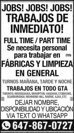 647-345-1904 o al 416-830-8574 (AR27)