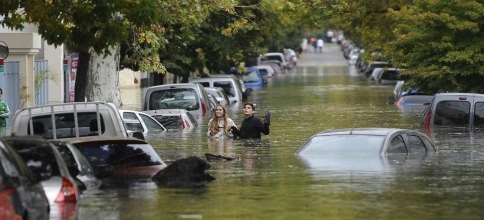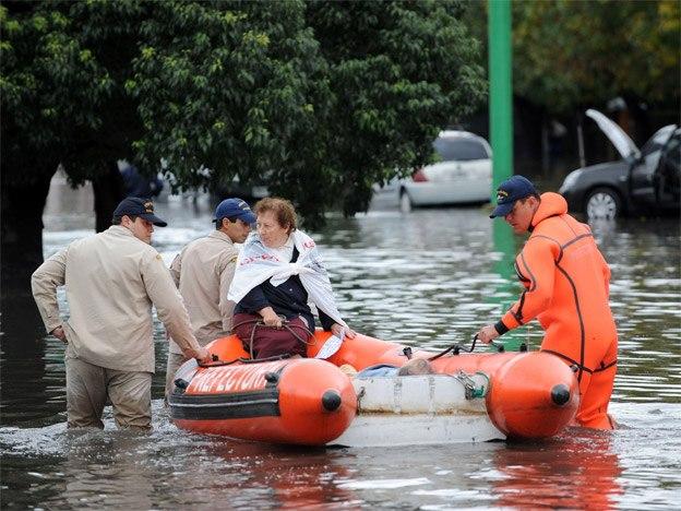 Las calles y los autos inundados. Familias sobre un puente destrozado