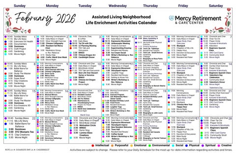 Residents may choose to participate in sing-alongs that include secular and spiritual music and Protestant and Catholic communion each week. In addition, non-denominational Bible studies and a weekly prayer meeting are held. With both religious and non-religious options available, individuals of any faith or no faith can enjoy a comfortable place to find peace and growth.