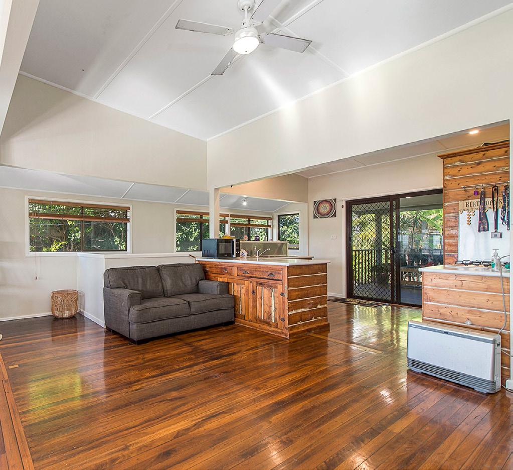 The home is enveloped in tropical themed gardens with Pineapples, Mangos, Avocado and Passionfruit to name just a few. For the animal lovers there is just under 5 acres of cleared land suitable for a horse or 2, sheep or what ever you want.