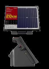 (2.0J output, 20 km) – includes internal 12V 14Ahr battery and 28W integrated solar panel. Portable for temporary, semi-permanent and permanent installations. Powers fence all year round without intervention. 3 year warranty.