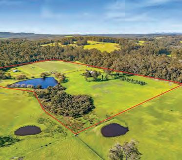 Set on approximately 100 acres, this architect-designed masterpiece blends modern luxury with rural tranquillity. Its clever modular layout connects light-filled living zones, featuring a striking open-plan kitchen, soaring ceilings, Jarrah timber floors, and expansive glass framing breathtaking views. The private master suite offers a spa ensuite, study, and deck access, while the guest wing includes multiple bedrooms, a theatre, and stylish family bathroom.