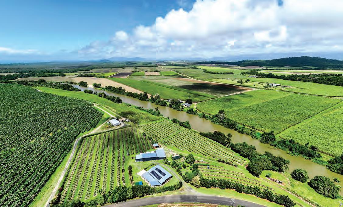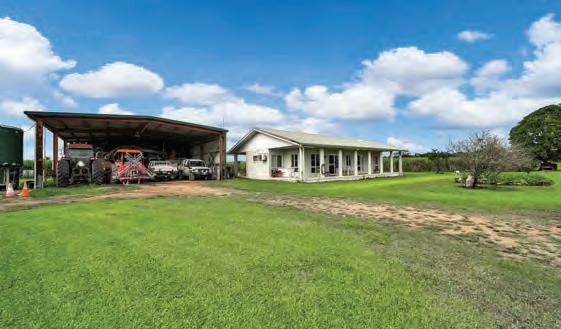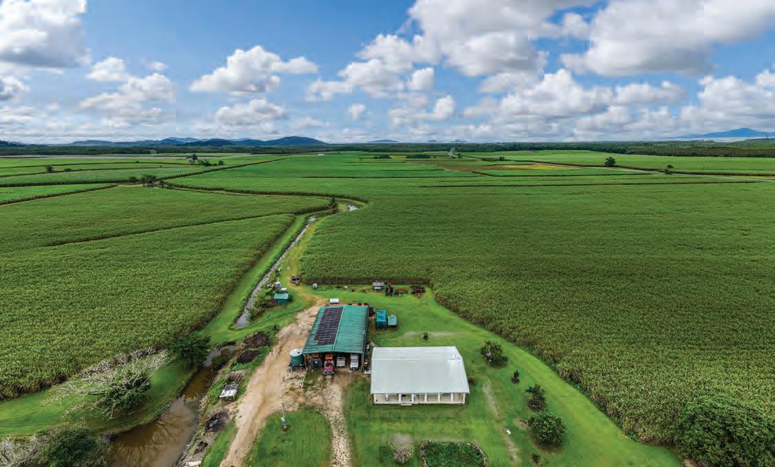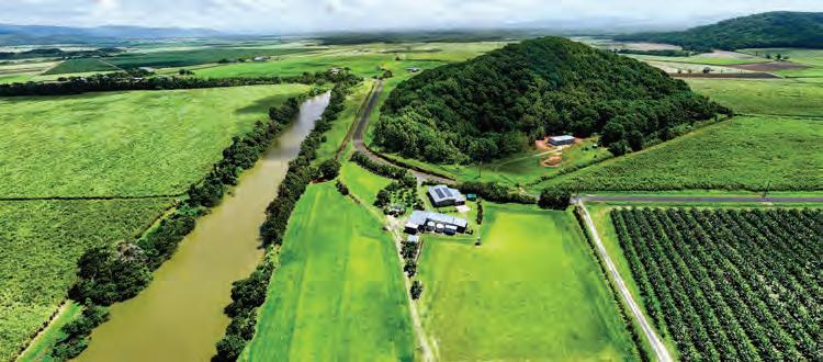 ‘Taville’ is an outstanding 155 acre lifestyle property and private executive sanctuary located south of Cairns, just 20 minutes from Innisfail. The estate features a grand 5-bedroom, 2-bath residence with a 7-car garage set on 62.6 hectares. A private driveway over Wooloogin Creek—flanked by orchards of Tahitian limes, pomelos, and lemonades—leads to the homestead nestled against a mountain backdrop.