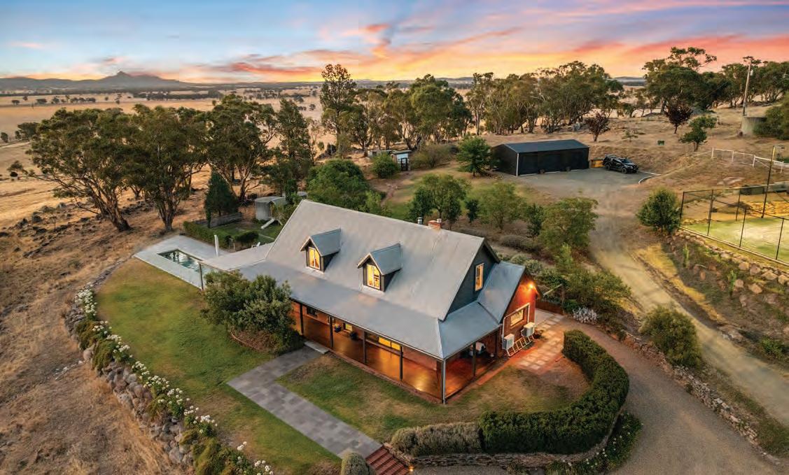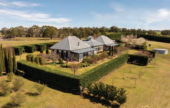 The property features a charming four-bedroom country homestead with period features, wrap-around verandahs, established gardens and a magnesium swimming pool with adjacent guest accommodation.