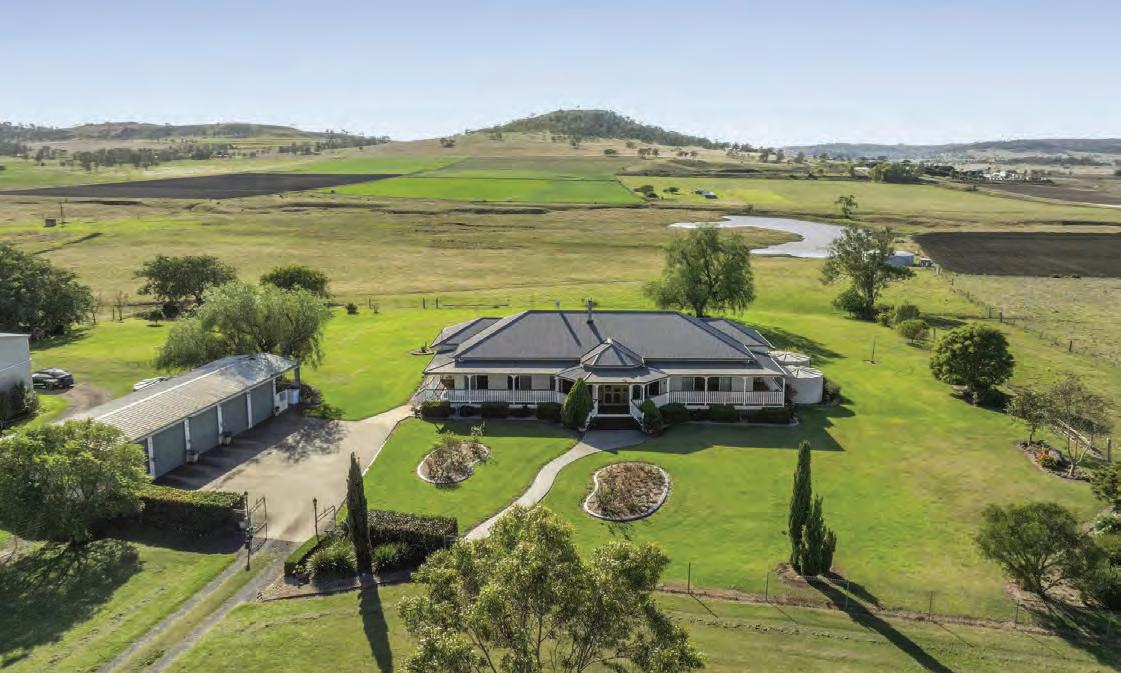 Only 15km from Toowoomba CBD, ‘Kenmore’ offers 83.54 hectares (206 acres) of executive rural living with scale, versatility, and exceptional water security. The gently undulating basalt country is currently used for hay and grazing, with 100 acres cultivated. The spacious five-bedroom homestead is set in a private, park-like setting with sweeping views, while additional infrastructure includes a 160’ x 40’ lockable machinery shed, 6-bay garage, stables, horse shelters, and three bores, two of which are equipped. Fenced into nine paddocks and supported by dams, troughs, tanks, and 4” mains, ‘Kenmore’ is an exceptional holding just minutes from one of Queensland’s fastest-growing regional centres.