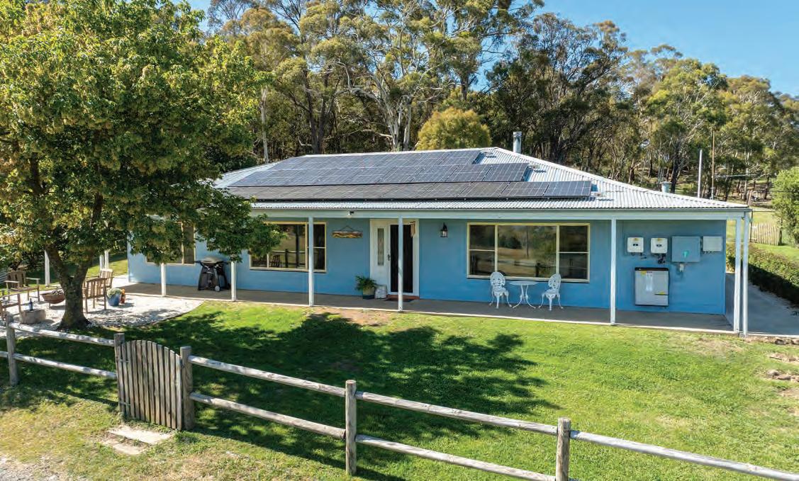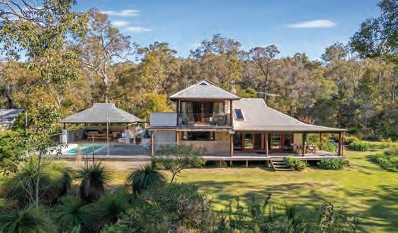 potential. The main 4-bedroom, 2-bathroom residence is currently a successful Air B&B, built with Jarrah timber, reconstituted limestone blocks, custom Tasmanian Oak and Sheoak doors, and a Marri kitchen benchtop. A spacious and welcoming living space features a striking stone fireplace made from on-site stone, with wide verandahs embracing the bush setting. The alfresco pavilion overlooks a concrete pool, perfect for entertaining. A 70 sqm separate studio offers additional accommodation with its own alfresco area. Sustainable features include solar power, ample water storage, a bore, seasonal creek, and a productive orchard. A large workshop completes the offering.