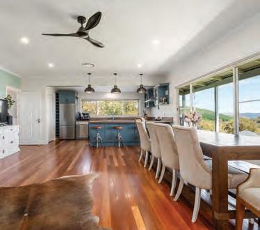 open-plan kitchen and dining, and an upstairs master suite with walk-in robe and dressing room. French doors open to a wraparound deck shaded by mature trees - perfect for entertaining. Four newly fenced paddocks, gravity-fed troughs, a lock-up shed and landscaped gardens complete the package suited for lifestyle or hobby farming.