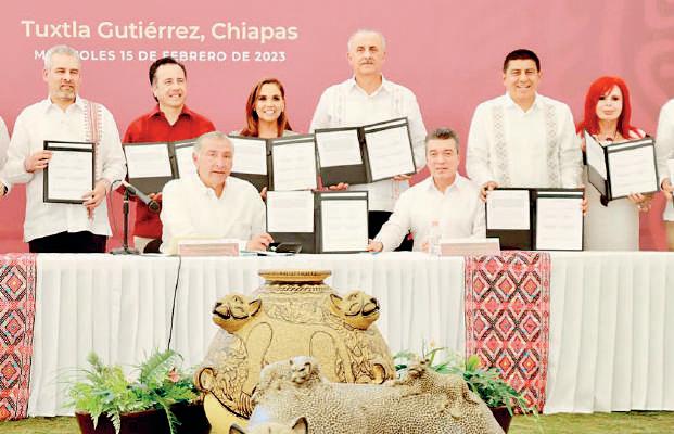 sus indicadores y lograr la paz social. Junto a los mandatarios de Campeche, Layda Sansores San Román; Quintana Roo, Mara Lezama Espinosa; Chiapas, Rutilio Escandón Cadenas; Guanajuato, Diego Rodríguez Vallejo; Michoacán, Alfredo Ramírez Bedolla; Nayarit, Miguel
