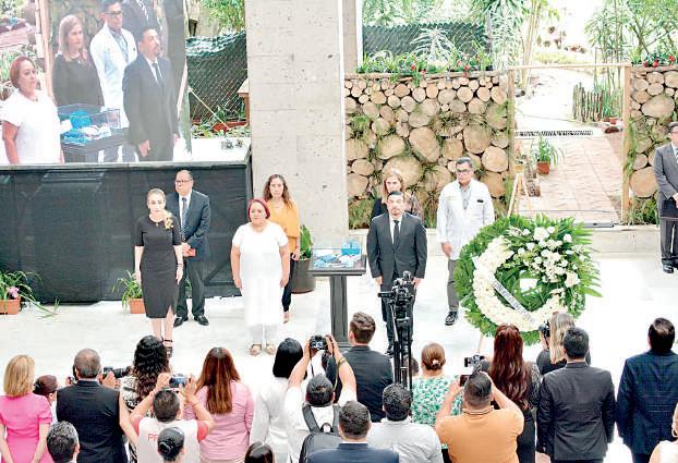 Guevara Guembe y Nora Jéssica Lagunes Jáuregui; la presidenta del Poder Judicial del estado, magistrada Lisbeth Aurelia Jiménez Aguirre; el secretario de Gobierno, Eric Cisneros Burgos; el secretario de Salud, Gerardo Díaz Morales, presentaron una ofrenda floral, montaron guardia de honor y guardaron un minuto de silencio.