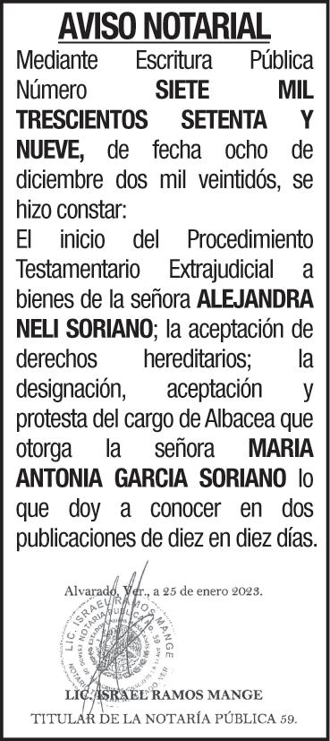 AGENCIAS EL DICTAMEN AGENCIAS EL DICTAMEN Veracruz, Ver. a Sábado 11 de Febrero de 2023 PÁGINA