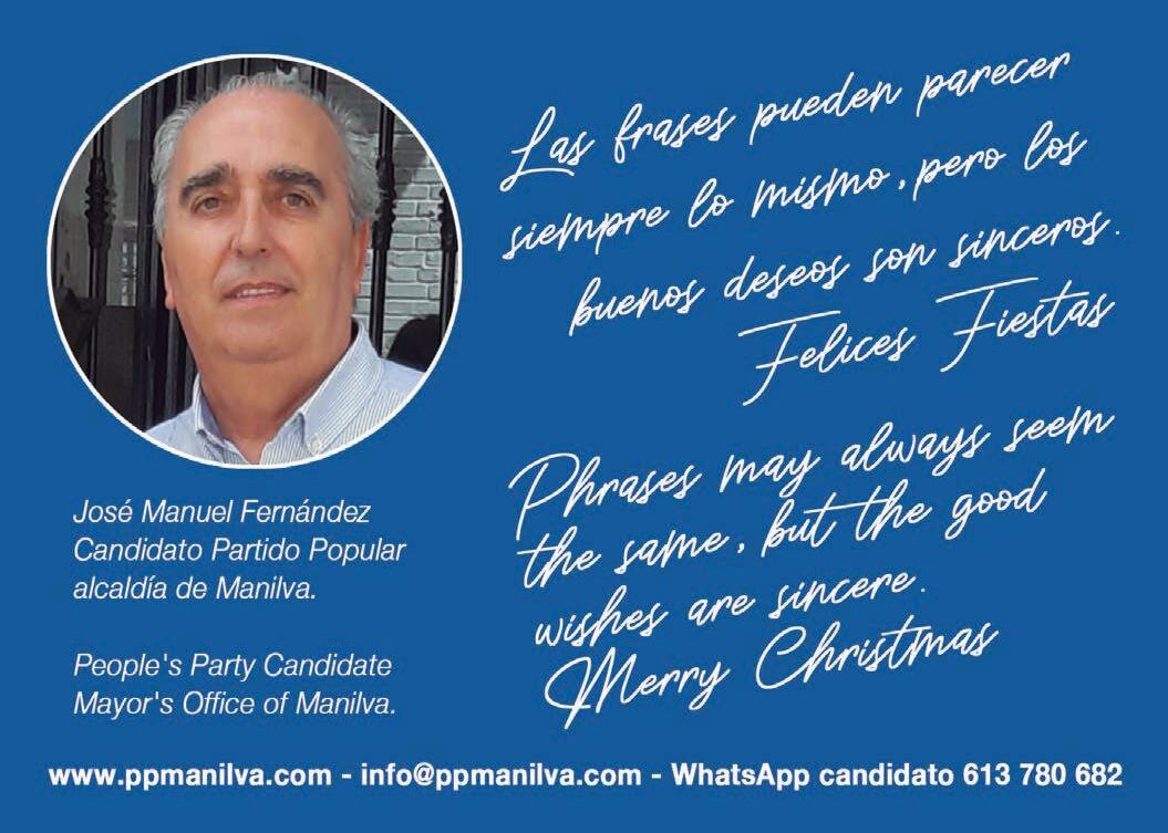 Recién elegido candidato de los populares manil veños, intentará alcanzar la alcaldía en mayo de 2023. En esta conversación con La Voz del Resi dent habla de sus proyectos, del gobierno local de Compromiso y PSOE, de la necesidad de cambio. José Manuel Fernández (Asturias, 1959) concurrirá por primera vez en mayo de 2023 como candidato del PP de Manilva a las elecciones municipales. En su dilatada vida, su relación con la política ha sido siempre entre bastidores y en la gestión, nunca en la primera línea a pesar de ser tentado en diferentes ocasiones en su As turias del alma. Su paso al frente de la candidatura po pular no ha sido sencillo, pero quienes le conocen dicen de él que su constancia y trabajo, pueden con todo.